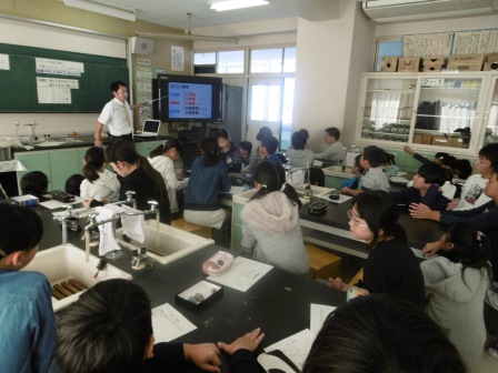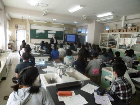 11月4日(金)理科の「地層のでき方」の学習で博物館の先生に来校していただいて、授業をしていただきました。
