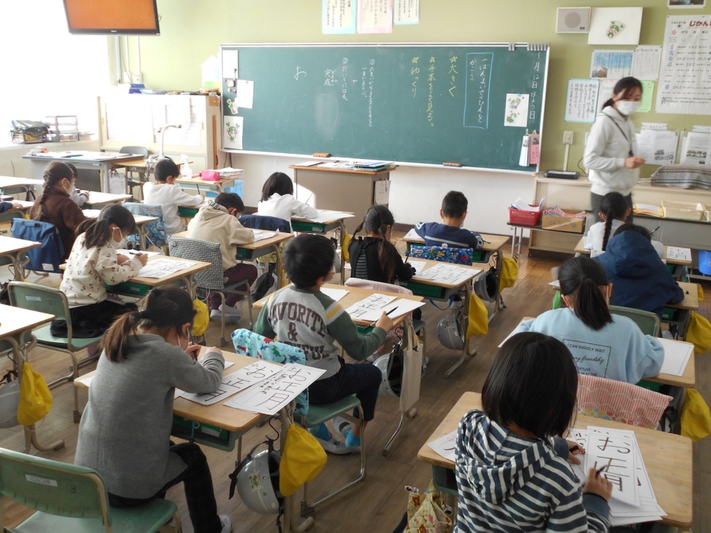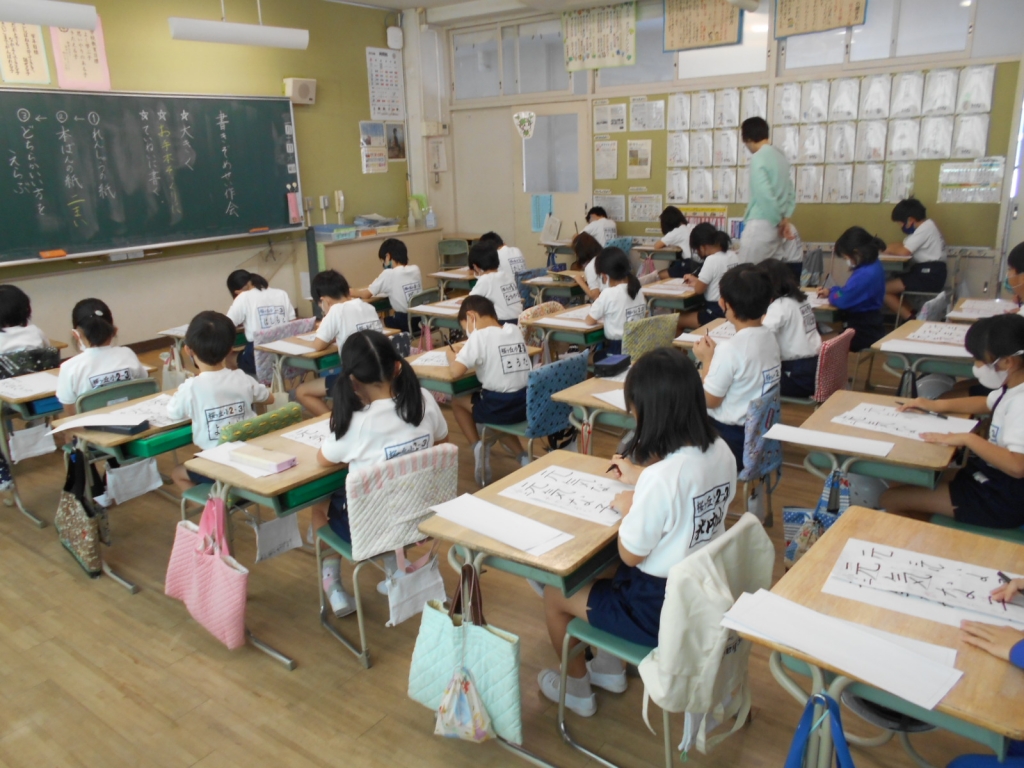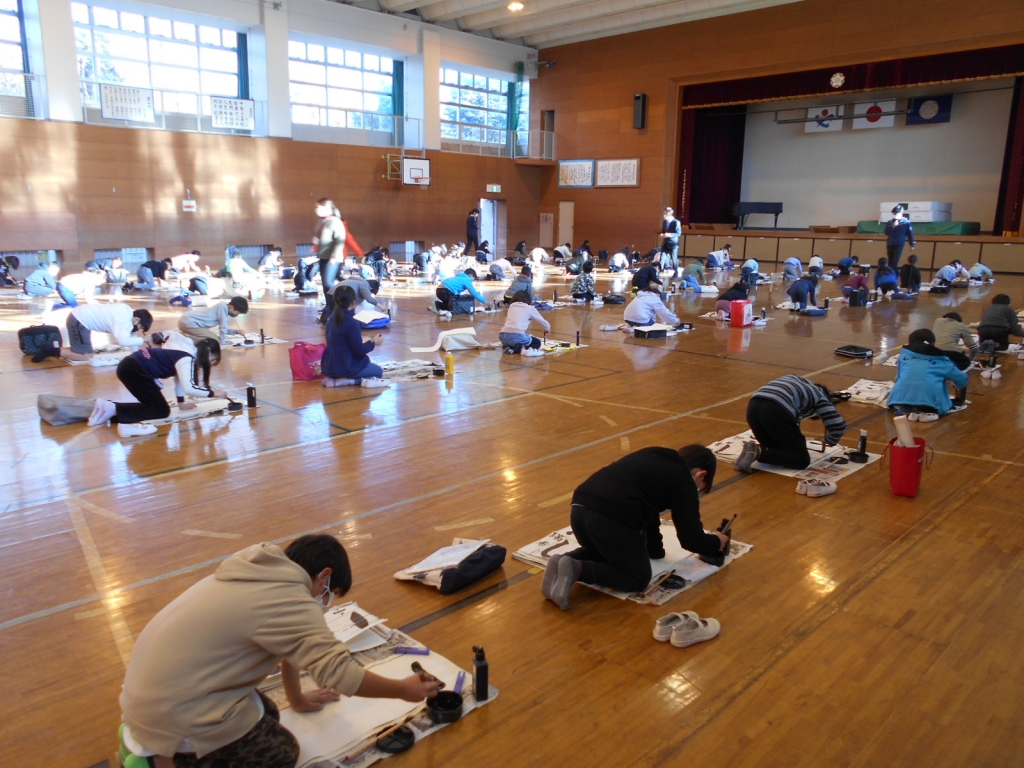 今日は毎年恒例の書きぞめ制作会(1.2.3.4年)がありました。