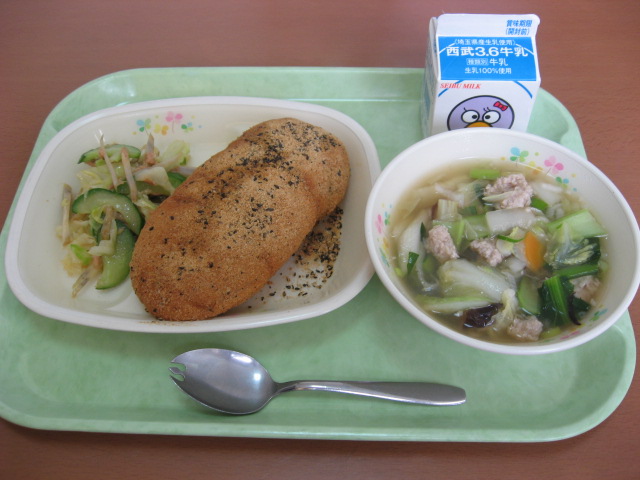 黒ごまきなこ揚げパン・白菜と肉団子のスープ