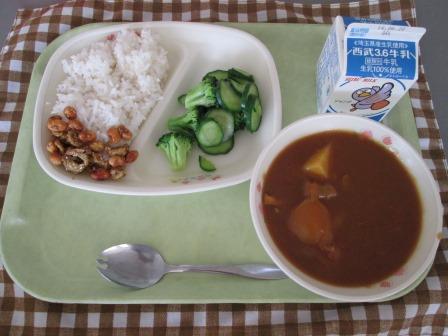 給食はチキンカレーそしてごぼうのかみかみ揚げです。