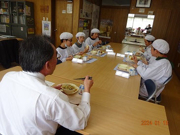 校長室で校長先生と大好きな給食を食べる会食がスタートしました。