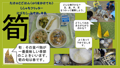 また、栄養教諭より、歯ごたえを残す調理の工夫についてお話後、簡単調理では