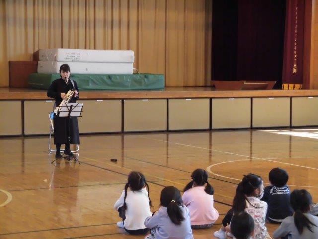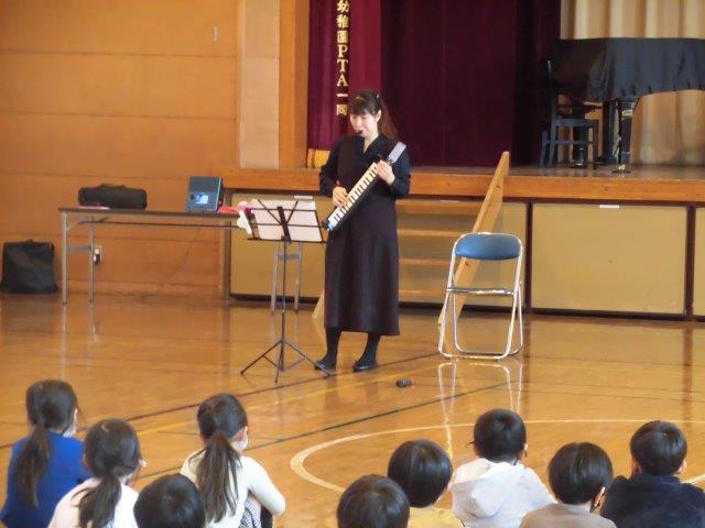また、実際に演奏を聴かせていただき、豊かな音色に子どもたちは聞き入っていました。
