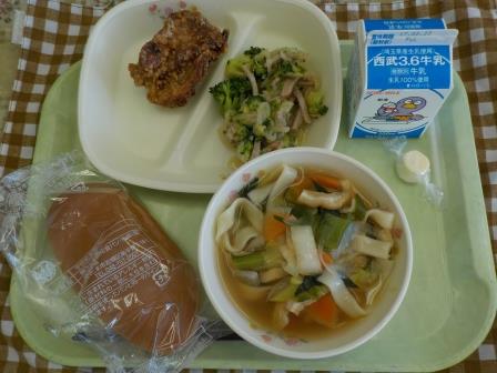 塩麹からあげ、ブロッコリーサラダ、牛乳