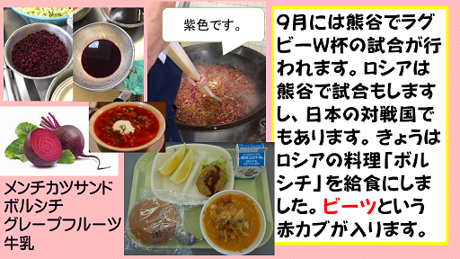 隣の熊谷市で試合をし、日本の対戦国であるロシアの郷土料理