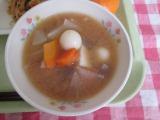 このことから白玉団子を石に見立ててみそ汁にいれました。