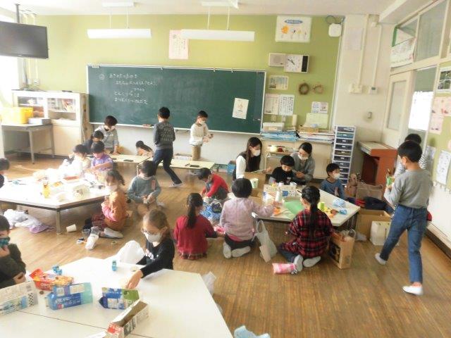1年1組で生活科の学習として、「秋の葉っぱや木の実を用いての制作活動」を行いました。