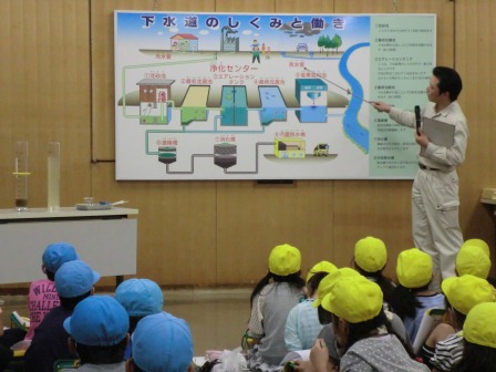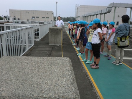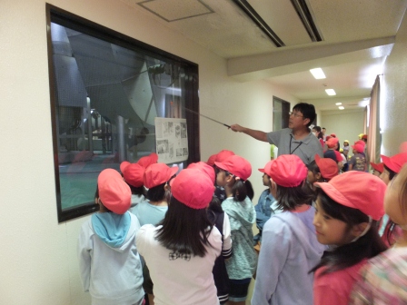 微生物を利用して水をきれいにしていく様子を見学しました。