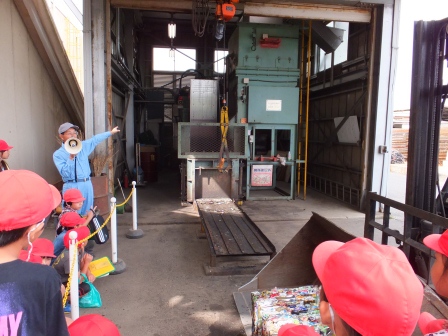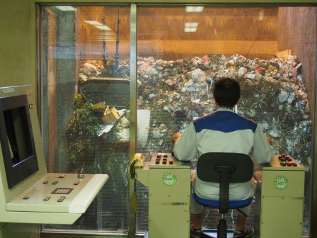 巨大なクレーンでゴミを焼却する様子を見学しました。