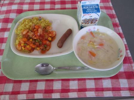 今日の給食は深谷の姉妹都市フリモントのメニューです。