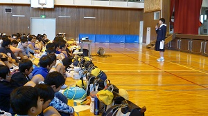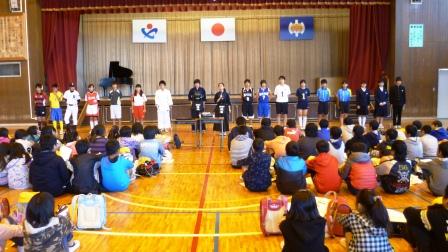 3年生が合唱「あなたへ」を披露してくれました。きれいな声だと自負していた6年生ですが中学生の力強い見事な歌声に圧倒されていました。
