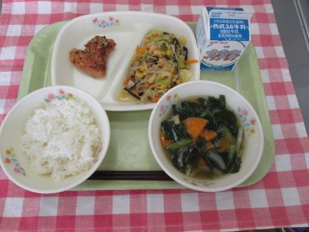 野菜いため、わかめスープ、牛乳