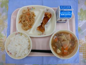 お礼に子供たちと一緒に給食(本日カレーうどん♬)を召し上がっていただきました。