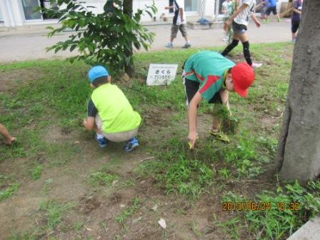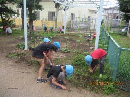 6月24日(月)、青空タイムに、全校で草むしりをしました。