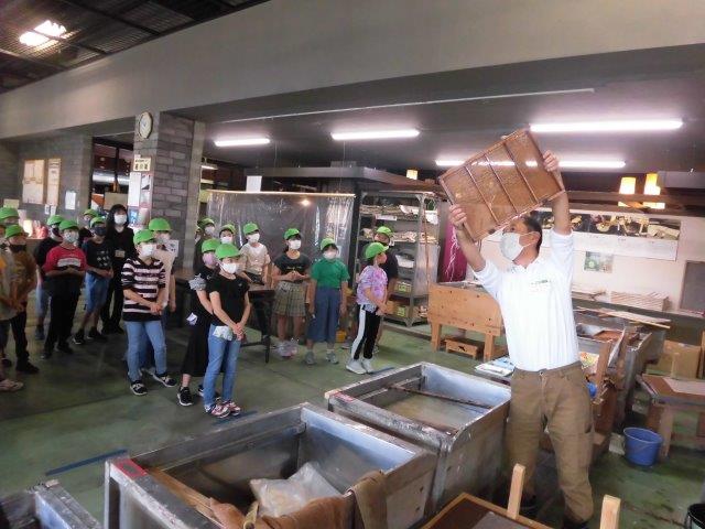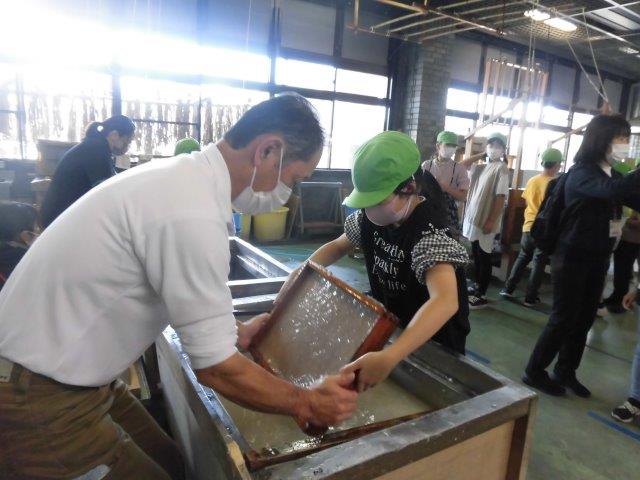 ここでは、紙漉き体験をさせていただきました。実際にやってみると、縦や横に水平に動かし、均一な厚さの紙を作るのは非常に難しいことがわかりました。自分で漉いた和紙を、今後学習でも活用します。完成した紙が届くのが楽しみです。