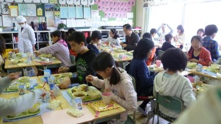 通常の給食に平行して6年生だけの特別メニューがでます。ふだんの給食だけでも大変なのに、心づくしのメニューが出て子どもたちは本当にうれしそうでした。