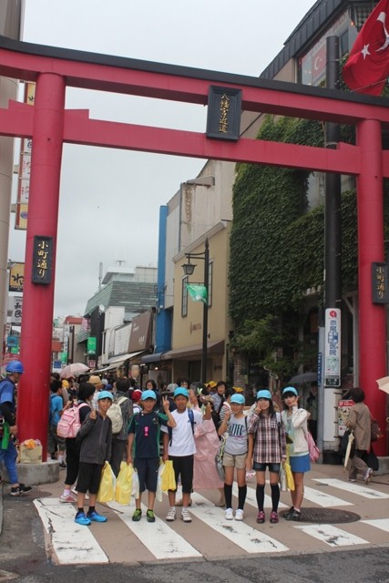 鶴岡八幡宮の鳥居の前で        子供たちが一番楽しみにしていた小町通り