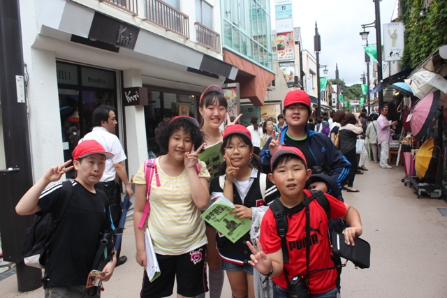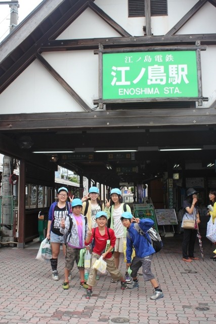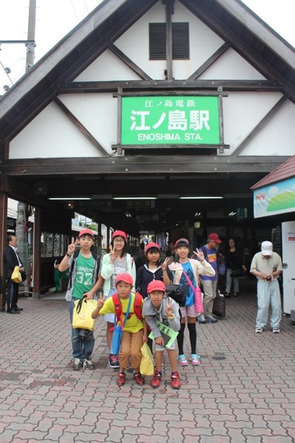 チェックポイントの江ノ島駅で。後は江ノ島水族館を目指すだけ・・・・。どのクラスの子