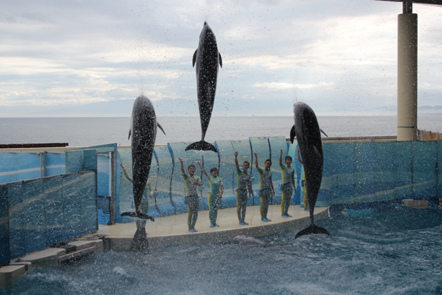 江ノ島水族館の目玉は、何といってもイルカショー!!みんな濡れても平気な
