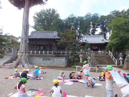 3年生は、滝宮神社に写生会に行きました。描いている間は雨も降らず、比較的涼しい中で、子どもたちは一生懸命に作業をすることができました。
