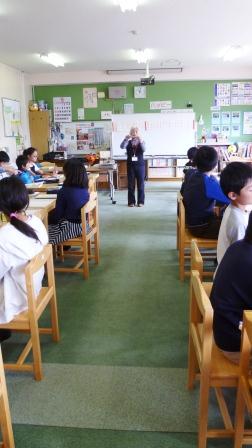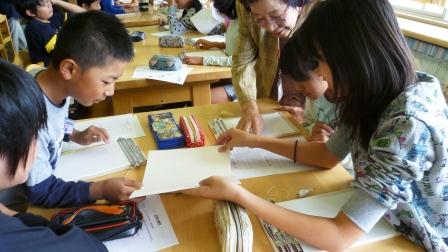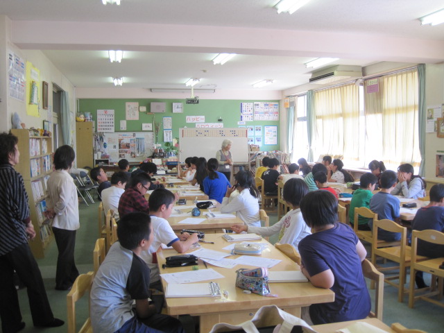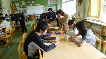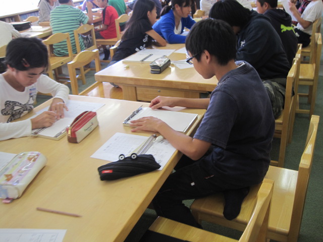 10日の手話教室に引き続き今回も講師をお招きして点字教室を開きました。全員が点字版を一台使って、簡単な点字を打たせてもらいました。一学期のアイマスク体験では、階段を下りたり廊下を歩いたりというわずかな体験だけでした。でもそのわずかな体験で、どの子も見えないという不安や、手探りで歩く怖さに大きな衝撃を受けていました。さらに、今回の活動を通して、視覚障害のある方の苦労に少しでも、近づけたようです。