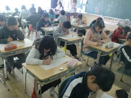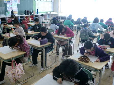 学習成果をみるために、3つの達成目標検証テストが行われました。(読む・書く)(計算)(アンケート2部)