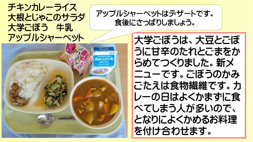 日々の工夫で1食分の噛む回数が改善できること、給食がよく考えられているとの保護者の方から感想をいただきました。