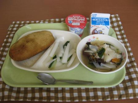 まっ茶入りきなこ揚げパン、わんたんスープ