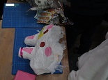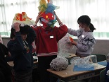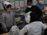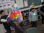 想像を膨らませ、試行錯誤しながら作ったお面。