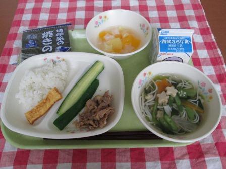 てまきごはん(きゅうり、たまご、焼き肉)七夕スープ
