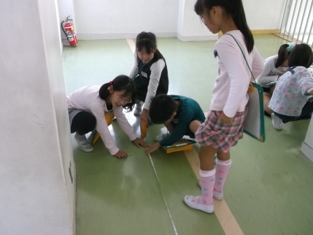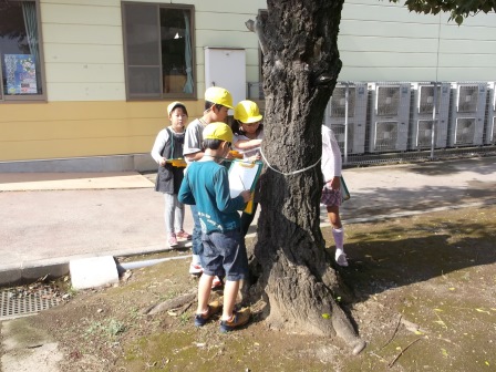 ☆校舎の廊下の長さ調べ           ☆木の幹の周りの長さ調べ