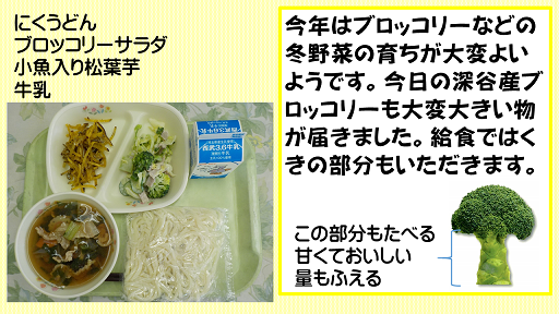 湯で時間を分けたブロッコリーと人参の試食を行いました。