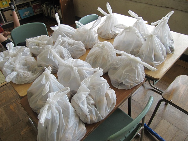 ビニール袋に小分けして、家の人、先生方に配りたいです。