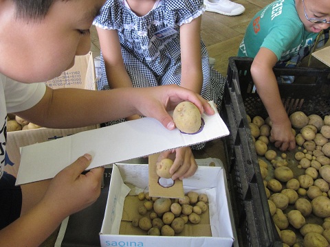 ソラニンを避けるため、小さいもの、緑色の出たものなどを取り除きました。