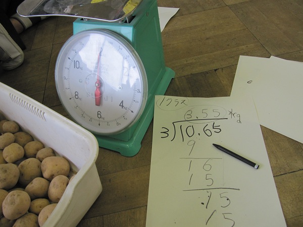 1組2組3組で3等分しました。1クラス3.55kgずつになりました。