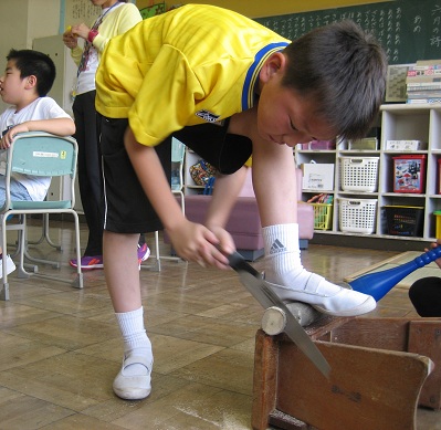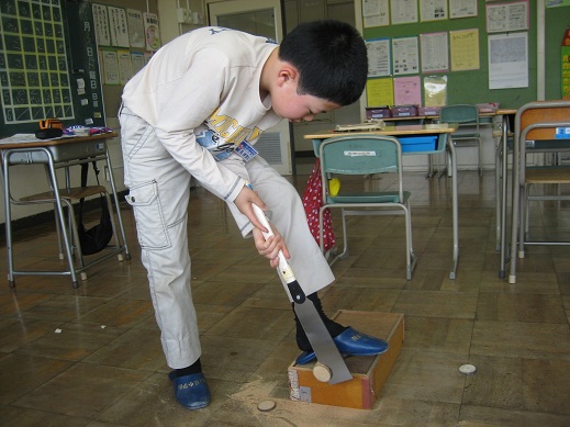 木を薄く切って、紙やすりをかけて、穴を開ける仕事もだんだんできるようになりました。