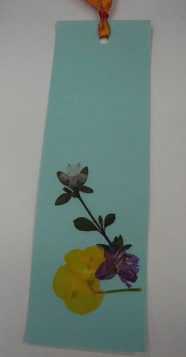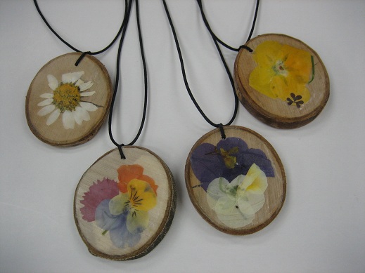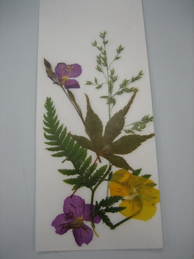 「押し花」を使って、しおりとペンダントとストラップを作りました。