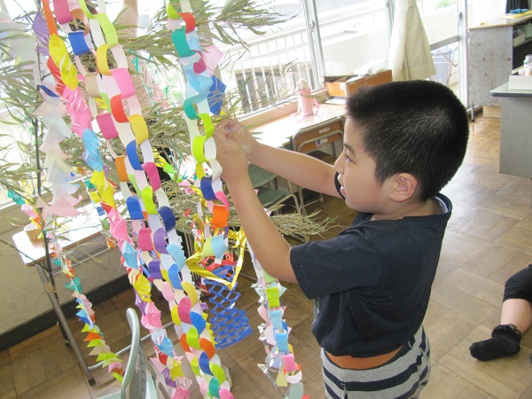 「七夕飾り」に願いを込めて」 1組 2組 3組