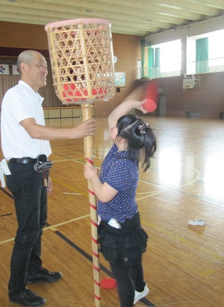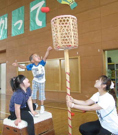 「玉入れ」が合同学習会のプログラムの一つにあります。