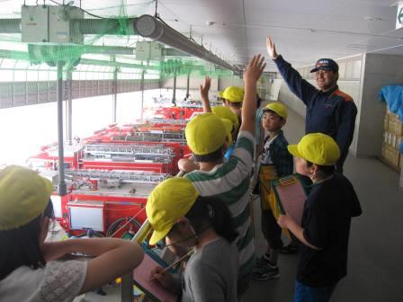 いろんな形の消防車にみんな興味しんしんです。