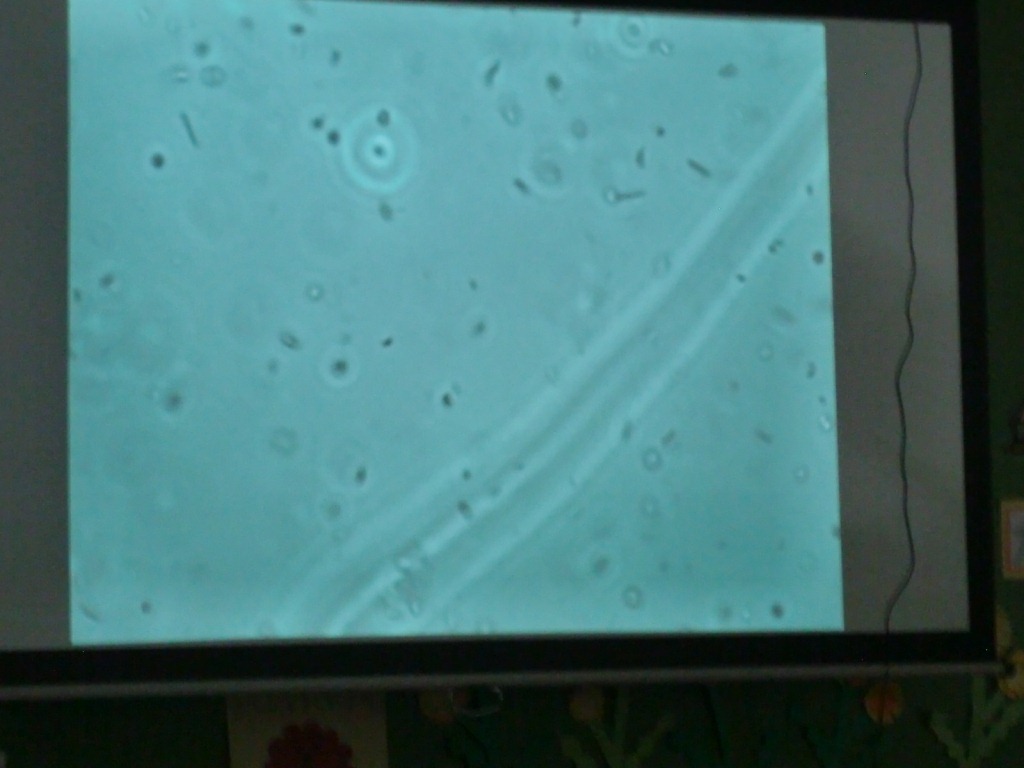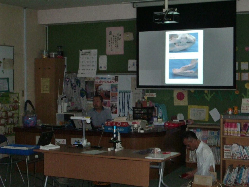 顕微鏡を使って、虫歯菌を見ました。活発に動く菌を見て、子どもたちからは悲鳴があがりました。