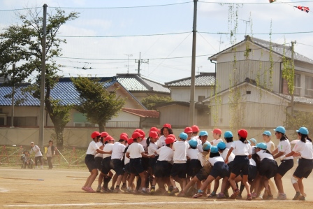 学校の中心として運動会を支えると目標を持って頑張った6年生です。どの色も自分のチームの勝利に貢献しようと一生懸命に取り組みました。