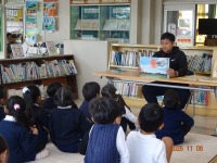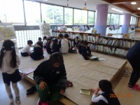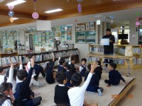 主幹教諭による紙芝居の読み聞かせを聞いたり、本を選んで自由に読んだりし、楽しんでいました。