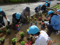 栽培委員の児童がサポーターズの方と一緒に手際よく花壇の植え替えをしました。