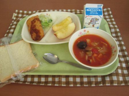 ハムカツサンド、秋野菜のミネストローネ