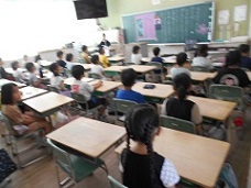 始業式は暑さ対策と子供たちの健康を重視し、涼しい各教室で放送にて行いました。