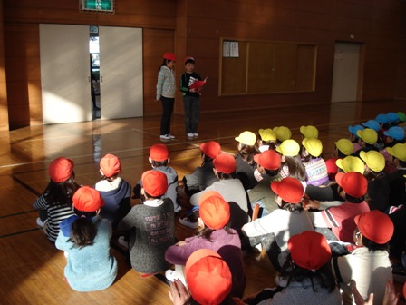 最後にクイズをして楽しく集会が終わりました。1組の皆さんありがとうございました。