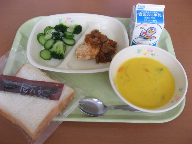 パンプキンポタージュ・ブロッコリーときゅうりのサラダ・牛乳