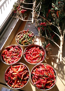 と乾燥した天気が2週間ほど続いたので、唐辛子は、カリカリに乾かすことが