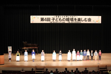 14日(日)に深谷市民文化会館で、「第4回子どもの暗唱を楽しむ会」が開催され、本校からは3年生が16名出場しました。今年は「彩の国21世紀郷土カルタ」「平家物語」を暗唱しました。練習の成果を発揮し、本番でも大きな声で、堂々と暗唱することができました。